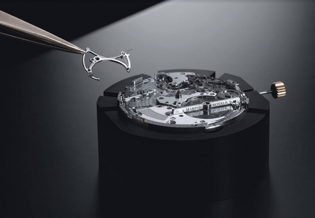 手錶面盤中央飾有機刻雕花波浪圖案,象徵Marine系列與海洋的聯繫。鑲貼羅馬數字和寶璣月亮形尖端指針,皆為玫瑰金材質。手錶背面以人手刻上古老的法國海軍旗艦:路易士皇家號於機芯橋板上。船艦圖案橫跨四枚橋板,而精緻的細節則由一枚橋板延續至另一枚。