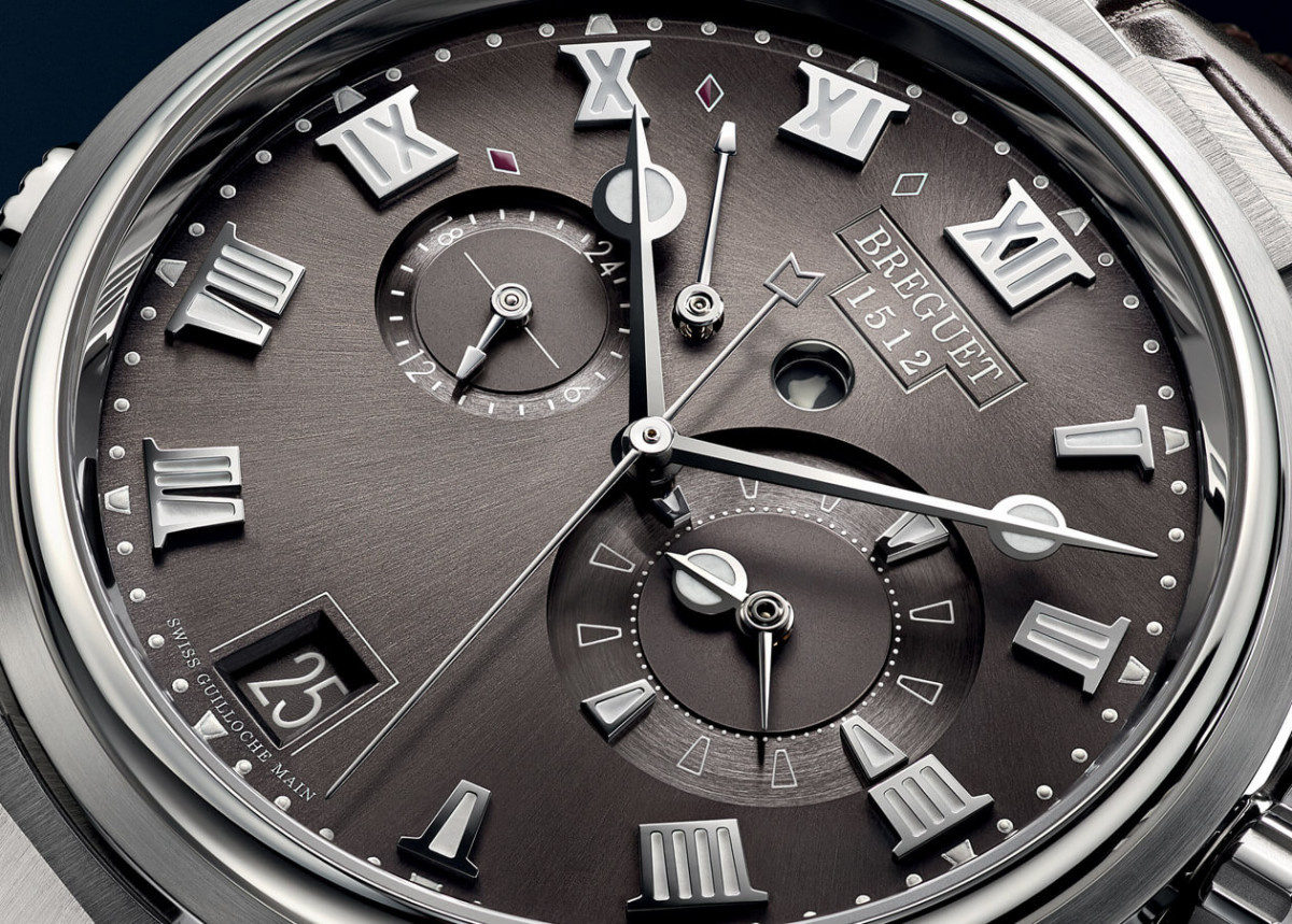 Marine 5547由於採用入手價格相對親切的鈦金屬錶殼,比起系列應用白金或玫瑰金的款式在面盤設計上亦呈現不同風格——貴金屬款如同舊版的Marine,面盤具有多種裝飾工藝塑造出較為豐富的視覺層次,然而鈦金屬款的Marine 5547則是返璞歸真,面盤改採簡約的太陽飾紋,但此種紋路的好處在於能使原本單一色調的岩灰色面盤隨著光線照射而呈現深淺變化。新版Marine相較舊版的革新處還表現在羅馬數字時標上,寶璣不僅放大了時標的尺寸,還進一步在上頭加上夜光物料,此外指針除了略為加粗,包括秒針末端平衡器改採航海信號旗設計以呼應寶璣品牌首字母“B”,這點也更能突顯出腕錶的名門血統。