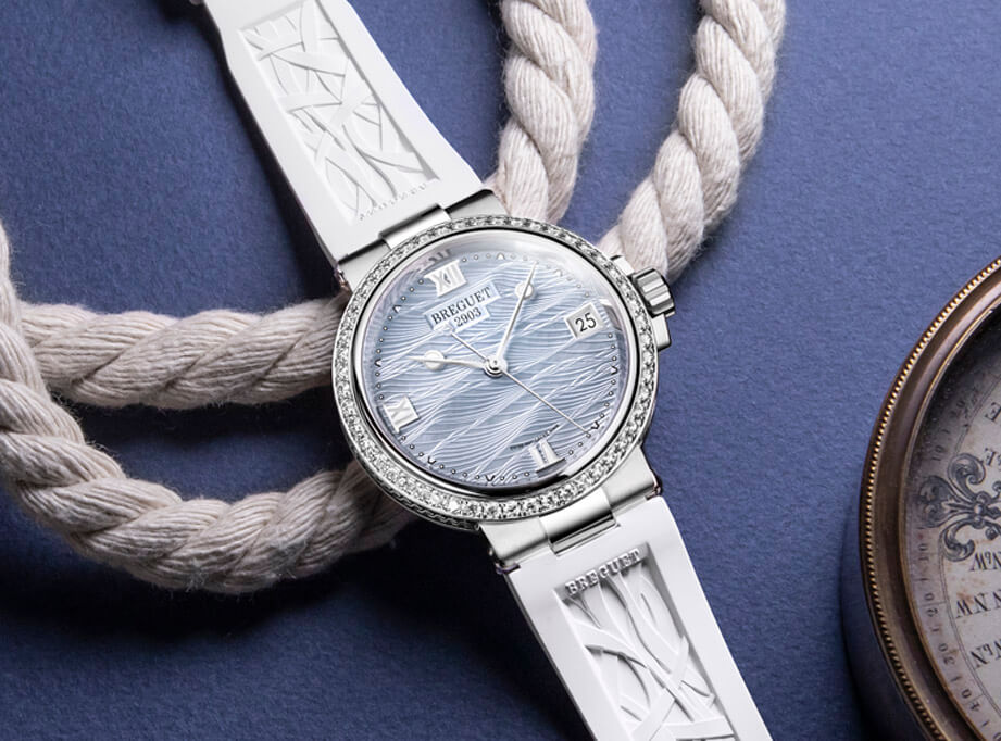 在各家高級品牌中,BREGUET寶璣又是歷史相對悠久的百年老牌,品牌創辦人寶璣大師在18~19世紀間陸續開發出許多重要的鐘錶發明,例如他在18世紀末期發明陀飛輪這個鐘錶史上極具里程碑意義的發明(後於1801年正式取得專利),對於提升時計的精準度貢獻良多,因而被人尊稱為「陀飛輪之父」,故選擇寶璣腕錶作為結婚對錶所蘊含的代表性不言而喻。今日寶璣旗下的腕錶系列堪稱各自精彩,男錶、女錶系列一應俱全,要從中找出兩只錶,表面上看起來不難,不過也正是由於選擇多,有時反而不容易決定目標。然而若依照當前消費市場的喜好趨勢,寶璣旗下的Marine系列擁有許多吸引力特質,成為寶璣最適合作為結婚對錶的理想選擇之一。