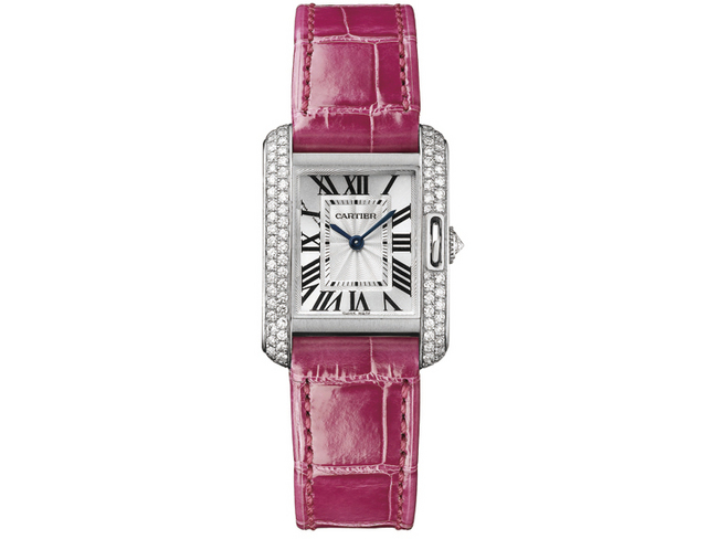 作為Tank家族的最年輕成員,Tank Anglaise英國坦克錶推出新品,以夢幻色系的全新鱷魚皮錶帶凸顯精緻與優雅氣質。鋪鑲鑽石的錶殼將極簡造型的錶款,賦予光芒。