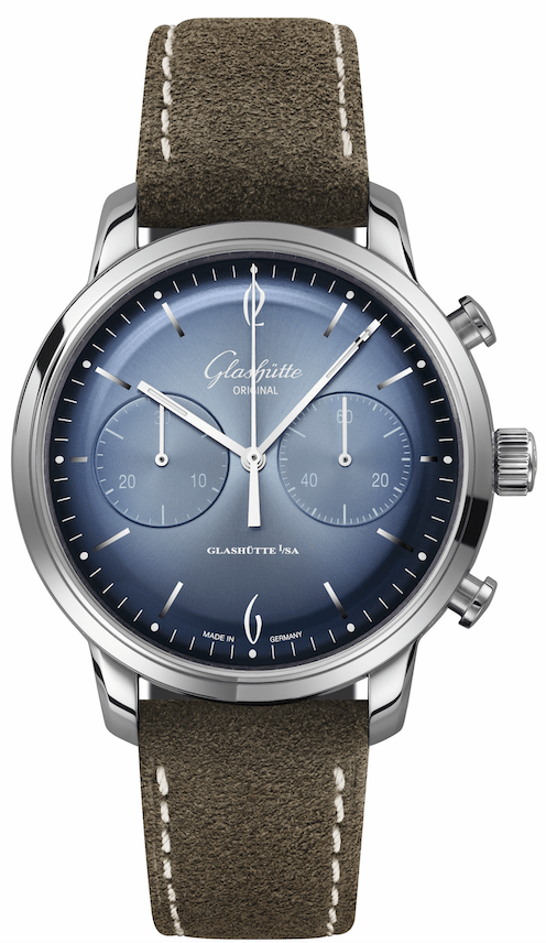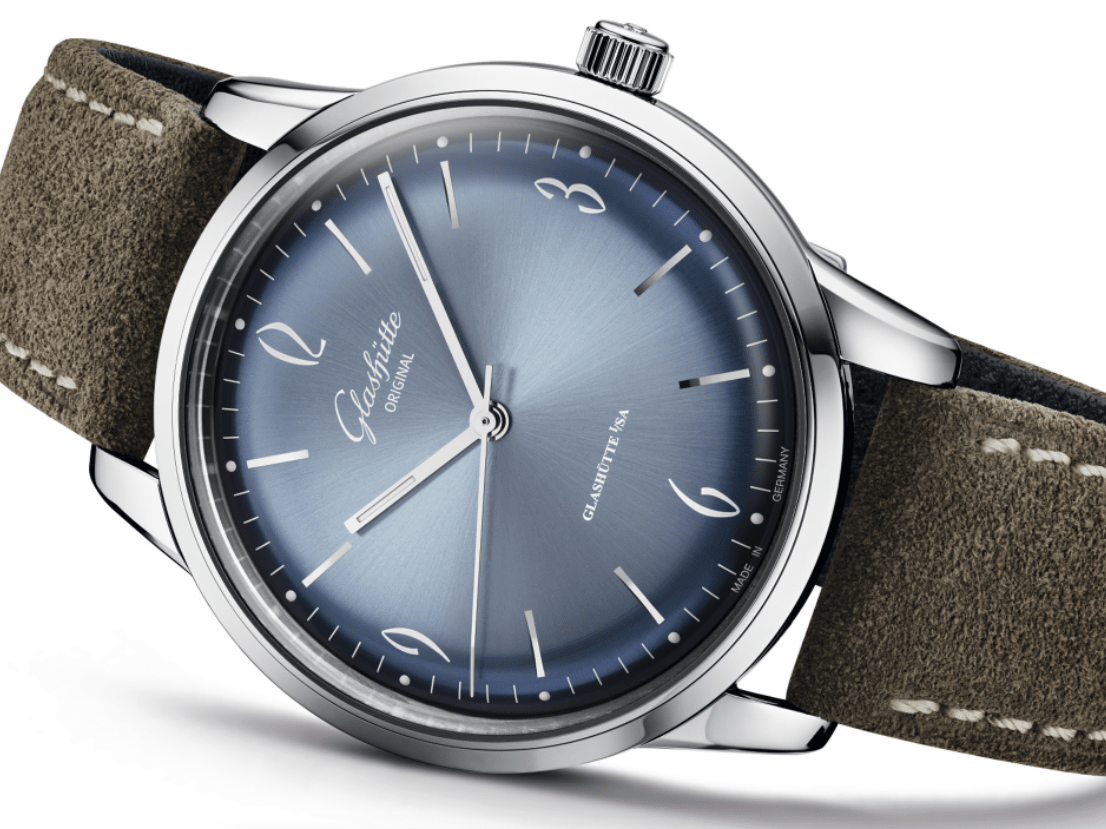 ▲格拉蘇蒂原創的製錶師本次以優雅的冰川藍色打造全新年度版,向這 一切所帶來的感動致敬,推出兩款手錶,以低調卻充滿力量的新面貌詮釋Sixties的特色。