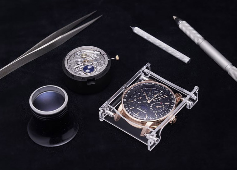 打開手錶取出機芯、預洗機芯、全面拆解機芯組件、預先更換任何容易磨損或已受損的零件、徹底清洗所有機芯組件、重新組裝機芯並全面上油潤滑、調校、安裝錶殼、最終檢測。