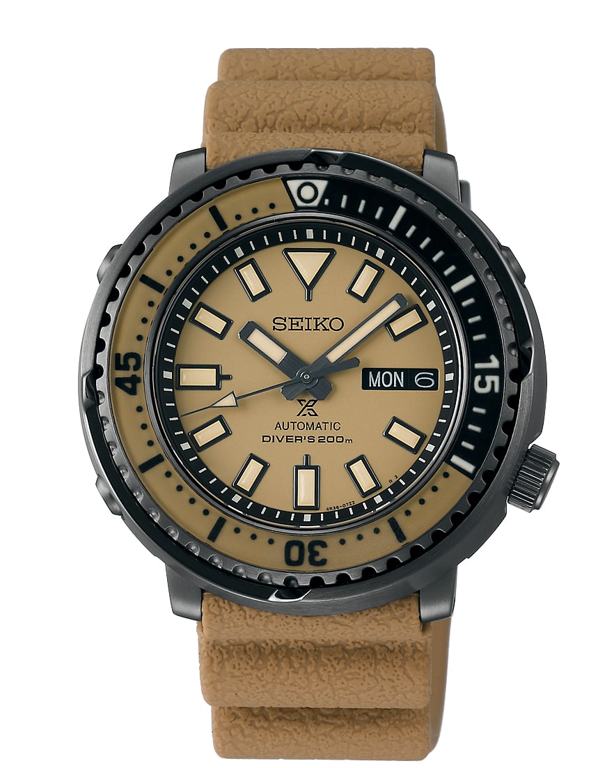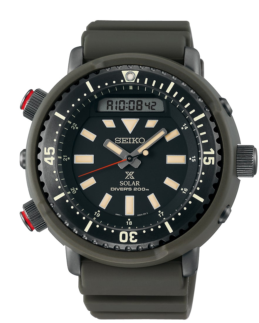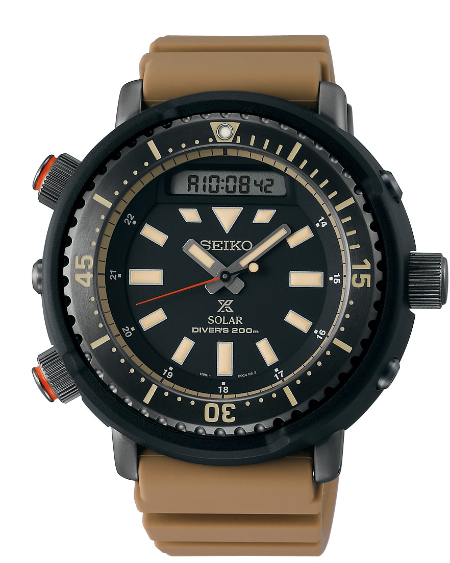 此次新款當中的SRPE29J1和SRPE31J1兩款搭載了4R36自動機芯,大三針加上日期與星期顯示的錶面一如鮪魚罐的基本配置;另兩款SNJ029P1和SNJ031P1兩款則搭載了H851太陽能計時機芯,面盤上除了時分秒針之外,12點鐘方向還加入了液晶螢幕,讓錶款得以同時用數位的方式顯示時間資訊,透過錶殼左側的兩個按把還能操作計時碼錶、鬧鈴以及LED背光等多種功能。