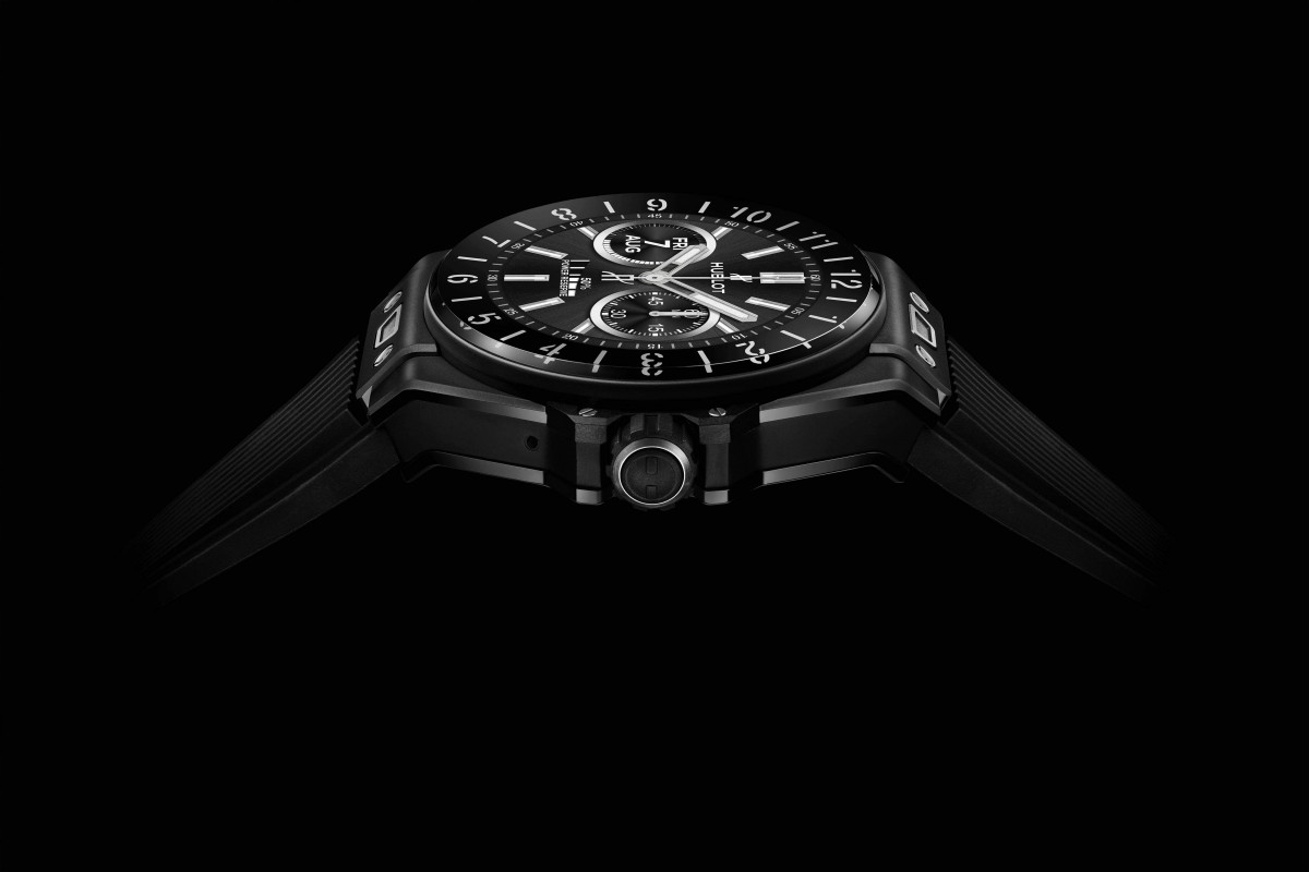 ▲錶殼由黑色陶瓷或鈦金屬材質打造而成,設計採用宇舶錶於2005年推出的創新三明治結構。這種複雜的結構由42枚零件構成,框架內包裹著手錶的核心數位元件。