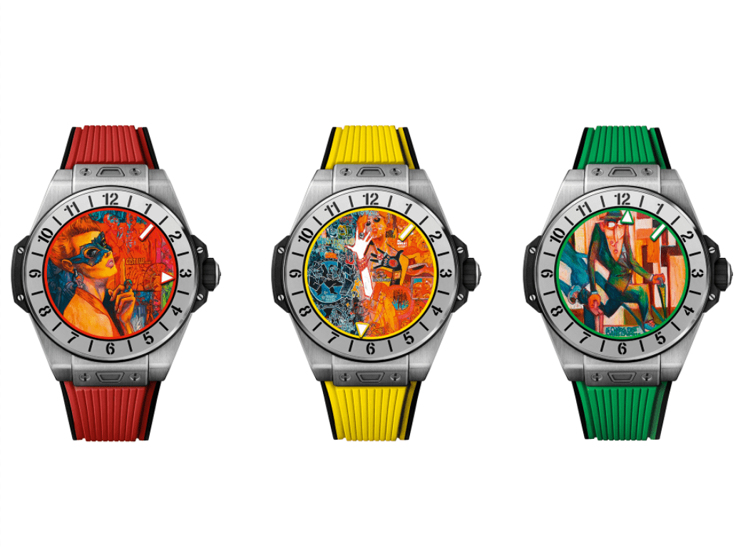 首款發行面盤系列將詮釋宇舶愛藝術主題,該系列8款面盤的創作靈感均源自藝術家馬克·費雷羅 (Marc Ferrero)。面盤每3個小時改變一次顏色,這意味著在 24 小時內,8 款面盤將依次顯示。每款面盤基於一種特定顏色: 歡樂黃、魔力藍、活力橙、無瑕白、自然綠、魔力紅、彩虹以及魔力黑。不僅如此,每逢整點面盤均會出現持續5秒鐘的動畫。
