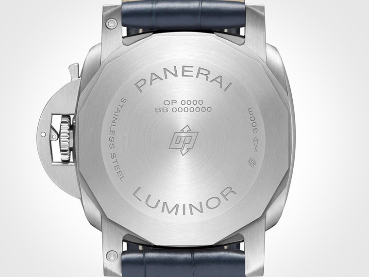 翻到錶背會看到刻有OP Logo的實底蓋,底蓋上標明手錶的的防水性能有300米,而底蓋下方保護著的,從面盤格局不難猜測是品牌的主力基礎機芯P.9010,這枚機芯配置了雙發條盒可以輸出3日鍊的動能、擺輪震頻為4Hz,以上都是合乎現代規格的設計,另外機芯除了停秒功能,也還有時針快調,方便佩戴者快速調校時間。