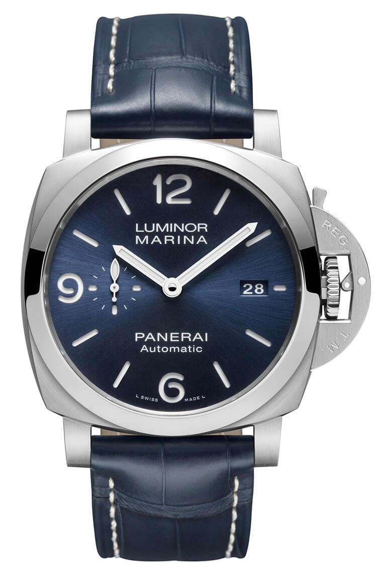 ▲沛納海推出新款Luminor Marina,其為系列目前唯一一款配置藍色錶帶與藍面的44mm不鏽鋼手錶。