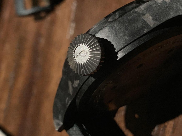 ▲碳纖維大飛IW506101的錶冠上可以看到魚圖案復刻再現。Source:watches master