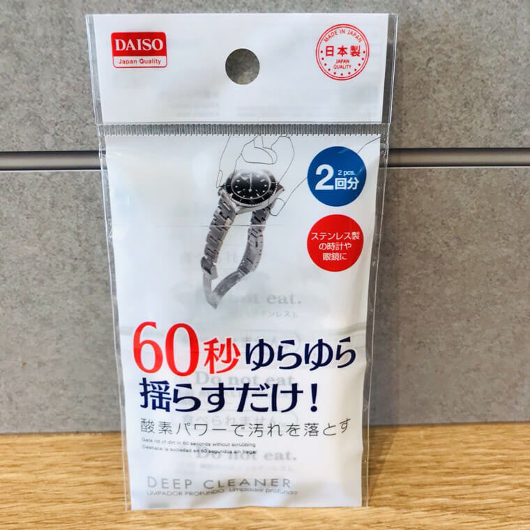 最近有日本錶友分享了他在大創找到的新發現,那其實是一種清潔劑,針對的適用對象包括不鏽鋼和玻璃材質,清潔劑的包裝上很清楚地放了一張手錶圖,示意使用者可以用來清潔手錶。不過要注意的是,這種清潔劑只是為了達到簡易且快速的手錶局部清潔目的,並非真正專業專用的清潔工具,因此從它的適用範圍來看,它主要可以用來清潔手錶的用途有一定的限制,那就是以不鏽鋼金屬鍊帶為主,而且要注意它只能用來清潔鍊帶,就算你今天戴的是勞力士水鬼也別輕易把錶頭連著鍊帶一起泡在這種清潔劑裡,以免對手錶的防水性能造成傷害。
