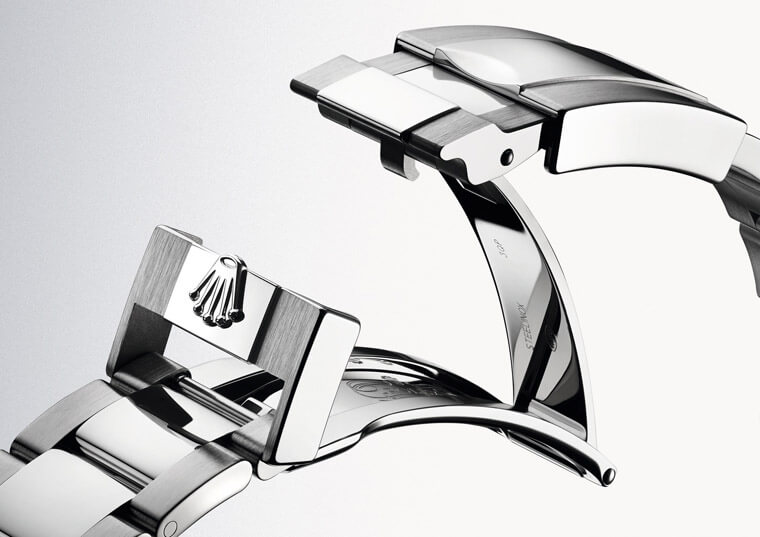 雖然說新水鬼鍊帶的全新設計並非指造型或是結構經過徹底的修改,但過往水鬼系列搭配的蠔式鍊帶加蠔式保險扣本來就是深獲錶迷和玩家好評的作品,似乎也不需要做大幅度的調整。蠔式鍊帶加蠔式保險扣這種組合簡單來說有兩大特點,一是Oysterlock錶扣設計,它的弧形外蓋能緊貼手腕內側,並且可以巧妙地將潛水錶上的Glidelock延展裝置以及錶扣的延展鍊節隱藏起來。當佩戴者要打開蠔式保險扣時,只要用手指揭開錶扣,便能看到錶扣的專利扣合桿,然後用指尖按壓扣合桿的邊緣就能鬆開內部的彈簧桿裝置,這時錶扣便能解開。