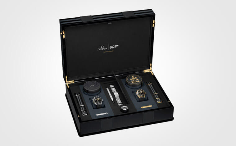 海馬潛水300米「詹姆士龐德」限量錶主要是要慶祝1969年第6部龐德電影《女王密使》上映50週年,歐米茄最先推出的是限量7007只的不鏽鋼款,後來在2019年11月時又加碼發表一盒裡面同時有不鏽鋼款和黃金款的套組(限量257套),這組海馬潛水300米「詹姆士龐德」限量錶讓人印象深刻的地方在於歐米茄替手錶訂製了由Globe-Trotter™打造的手提箱專屬錶盒,外觀看起來超有質感又氣派,即使這組套錶價格不菲(定價NT$ 1,377,900)還是很能吸引人的收藏慾望。