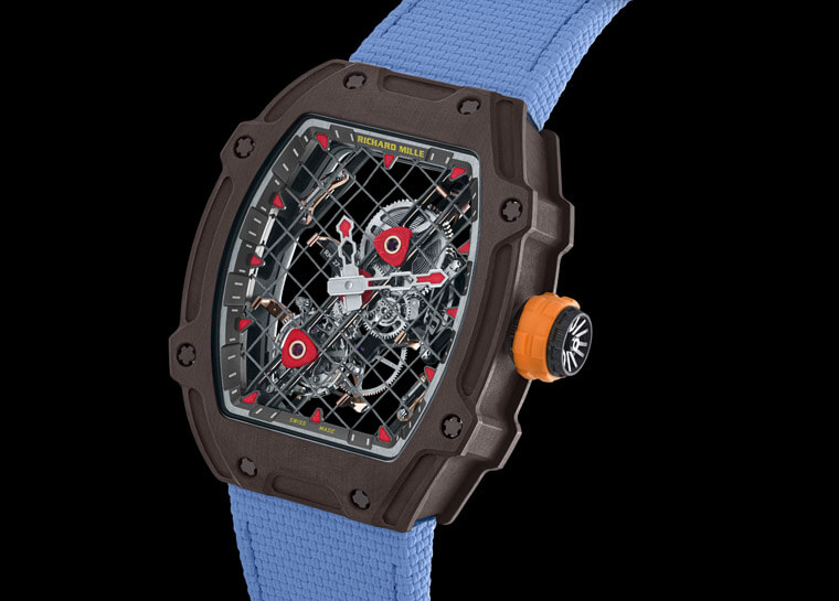 Nadal和錶界知名品牌RICHARD MILLE於2010年首度攜手合作,在這十年的歲月中,我們屢次看到西班牙蠻牛實際佩戴RICHARD MILLE手錶下場參與強度極高的大滿貫男單比賽;過去幾年Nadal奪冠手上戴的都是RICHARD MILLE於2017年打造的RM 27-03,這款錶的錶殼以先進的紅⿈⾊調TPT®⽯英材質製成,呼應Nadal出生西班牙的國籍背景。