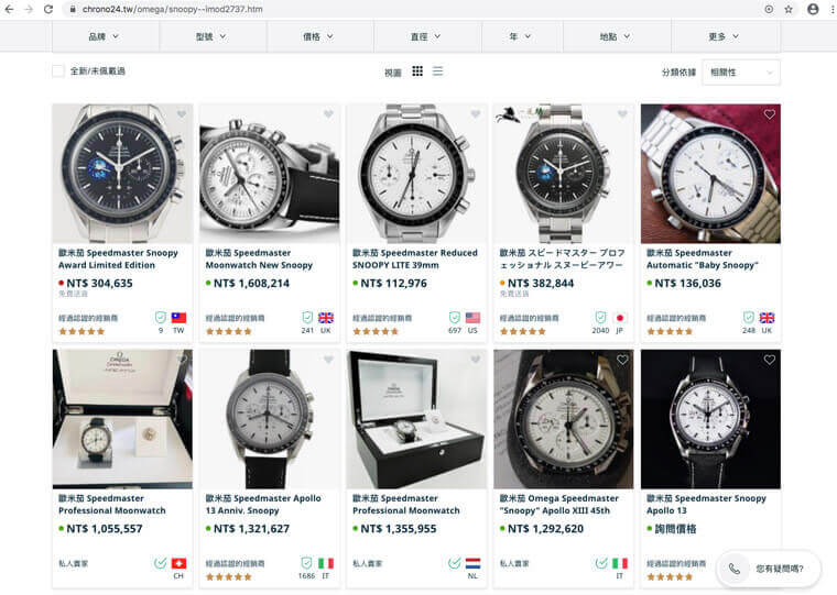 喜歡手錶的人應該多多少少有聽過”Chrono24”這個來自德國的二手錶線上交易平台,他們早在2003年就已經創立,每年的交易額逐步累積,目前也是全球交易額名列前茅的二手錶網站。有時想要搜尋手錶資料或圖片很容易就找到他們家網站,點進去看會發現裡面有很多家手錶,從英文字母A一路排到Z都找得到,而且方便的是,目前他們在不同國家或地區都有架設網站,包括台灣在內共有44個國家都有Chrono24可以線上搜尋、查價和買賣手錶,是還滿好用的一個網站。