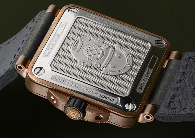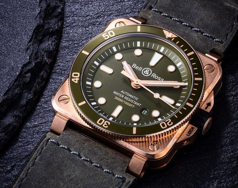 ▲同樣的造型,BR 03-92方形潛水錶搭配不鏽鋼、陶瓷或是青銅錶殼就能呈現不一樣的個性,例如青銅款往往會讓人感到較具復古氛圍。