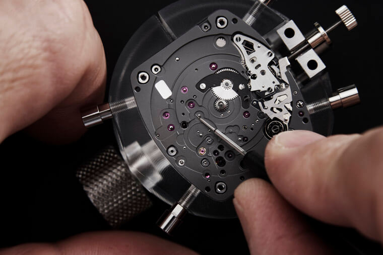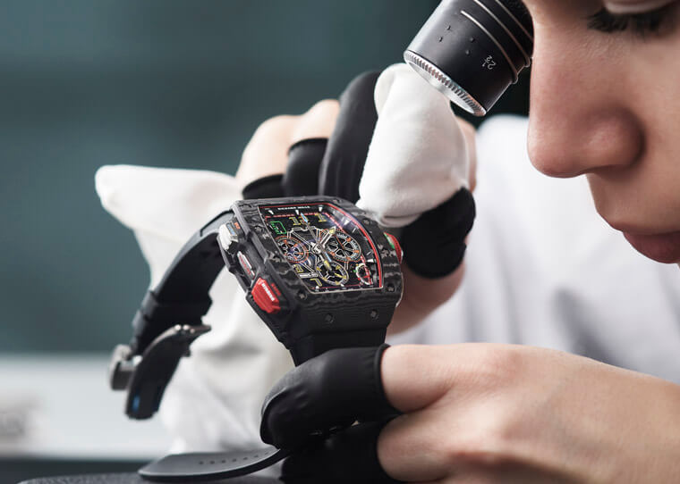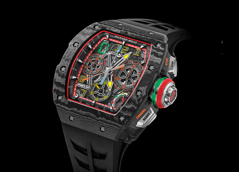 RICHARD MILLE尋求著名機芯廠Vaucher Manufacture Fleurier合作,雙方開發出RMAC4這枚一體化結構的機芯。這枚機芯配置5赫茲(每小時震動36,000次)的高震頻擺輪,以捕捉更細緻的走時節奏,同時品牌還將計時的精確度提升至十分之一秒,並加上能夠判讀兩個物體時間差距的追針秒針。值得注意的是,這枚機芯乃是RICHARD MILLE旗下自動手錶中首款具備追針功能的處女作,對品牌而言意義不俗。