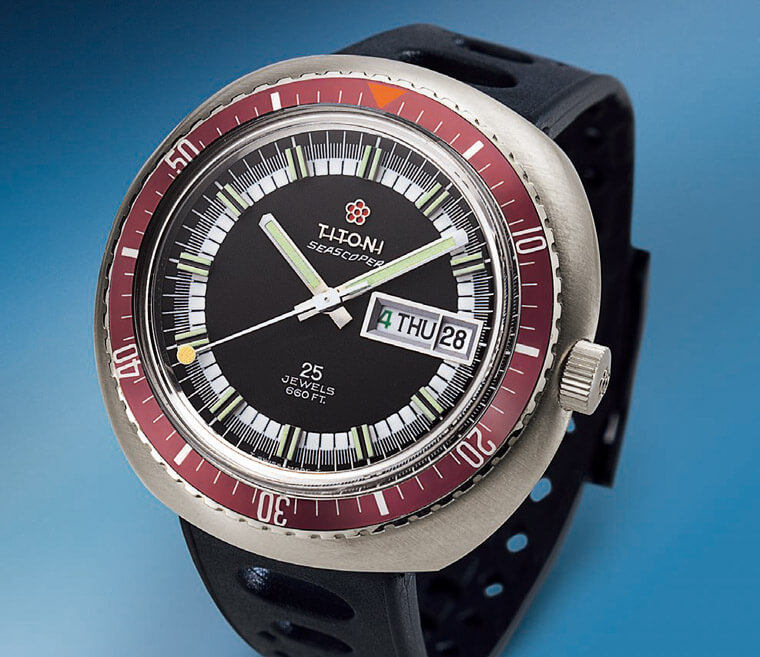 入門級別的潛水錶品牌和款式都不少,而且近年這類價格相對親切的產品還有規格愈來愈高檔的趨勢。像最近有一款滿受錶友討論的作品出自TITONI梅花錶,品牌將旗下發跡自1960年代的Seascoper潛水錶重新演繹帶入現代,以進化至600米的防水性能,重新擦亮Seascoper潛水錶當年受市場矚目的招牌。