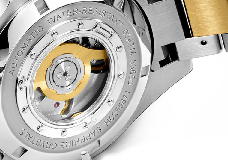 與多數潛水錶不同的是,Seascoper 600米深潛系列採用透明底蓋以露出它的紮實機芯,而且品牌在錶背使用的藍寶石水晶還必需做得更厚(達3.4mm)以對付深海中的高壓環境,底蓋邊緣別出心裁設計成類似舷窗造型,彷彿底下乘載著潛水員般讓人看了發出會心一笑。