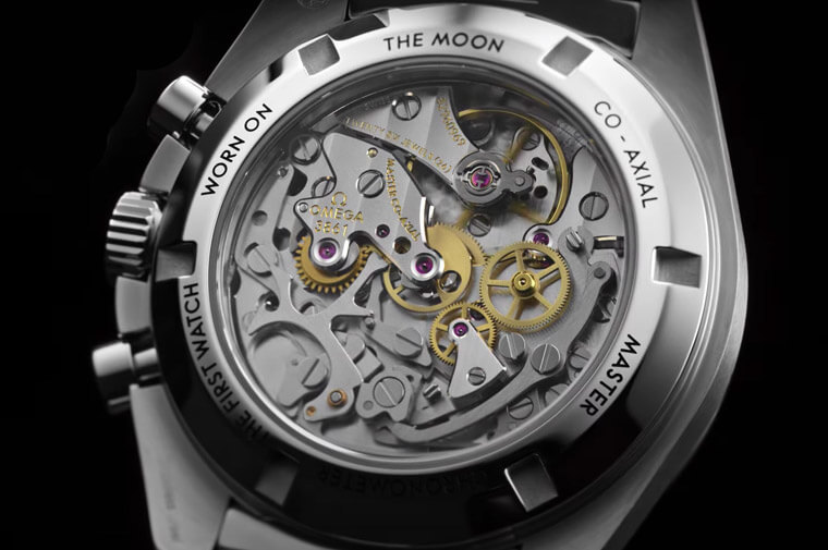 ▲新款登月錶最大亮點在於升級成通過大師天文台認證的3861機芯,搭配藍寶石水晶鏡面的款式錶背採透背設計能將機芯結構一覽無遺。
