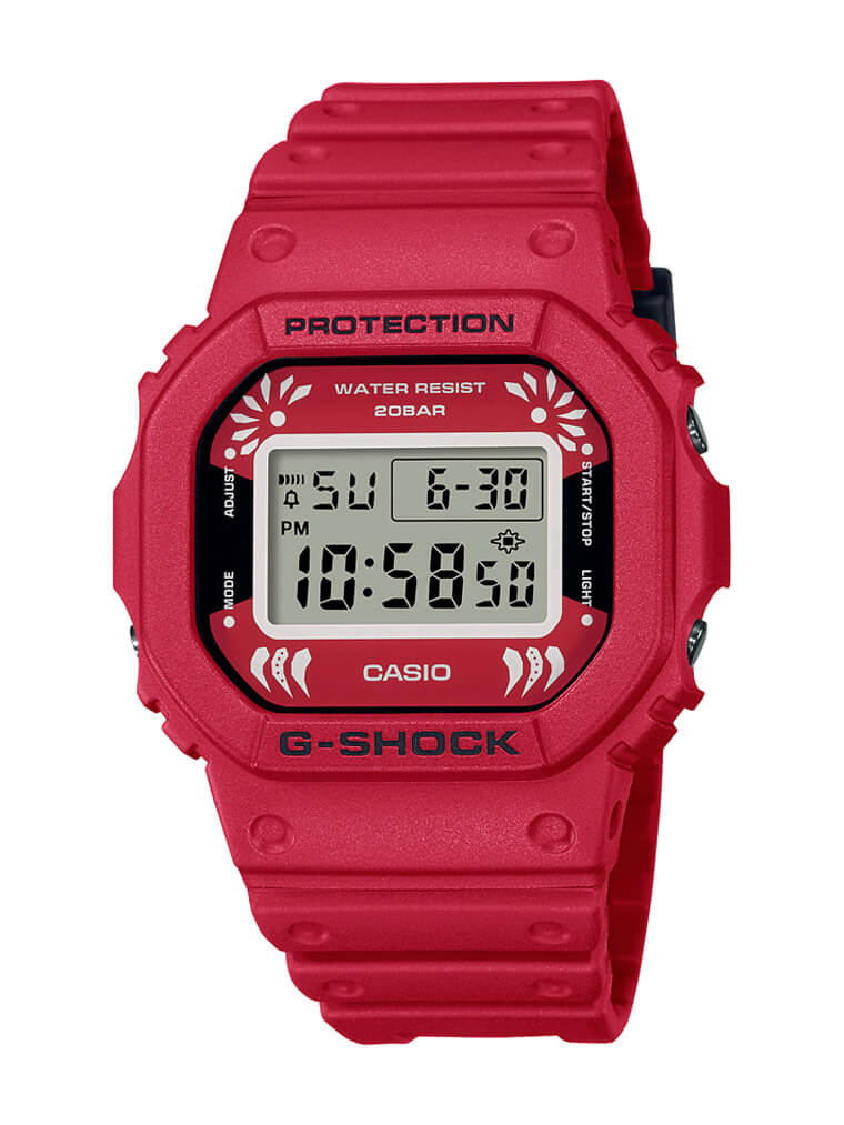G-SHOCK此次分別以DW-5600、DW-6900與GA-100等三個系列為基礎創作達摩系列手錶,一如開頭所提到,全紅錶殼是達摩系列的共同特徵,同時在錶帶扣環處也都具有小巧的達摩圖像呼應創作主題。不過相較於DW-5600、DW-6900兩款的錶帶皆與錶殼同樣採用紅色樹脂材質,錶徑更大的GA-100則是分成錶殼—紅色、錶帶-黑色的雙色調示人,在相同主題之下延伸出手錶彼此的獨立個性。