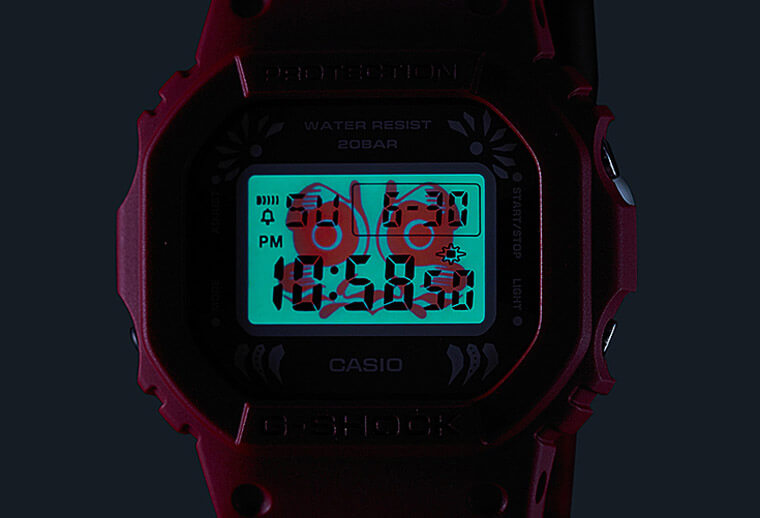 ▲DW-5600DA-4的背光照明圖案是達摩的眼睛與鬍鬚。