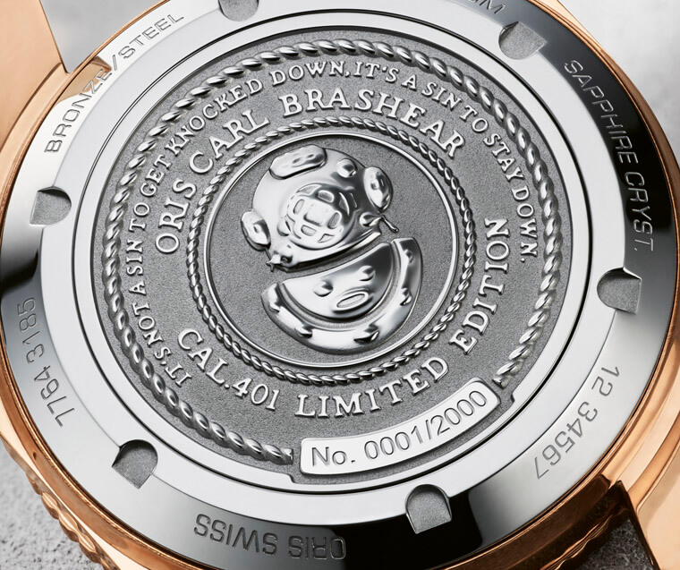 ORIS在2016年加入錶壇時興的青銅錶風潮,以紀念美國海軍傳奇潛水士官長Carl Brashear的名義發表品牌首款青銅錶殼作品,接著在2018年ORIS再接再厲推出升級為計時功能的第二代Carl Brashear限量錶,而也就是在這兩款推出的期間,ORIS又持續開發出更多採用青銅或是不鏽鋼與青銅組合成的「半銅」手錶作品,可見Carl Brashear限量錶對於品牌研發青銅材質領域有其開創性的先鋒地位。2021年ORIS第三度打造出Carl Brashear限量青銅手錶,這次手錶搭載的機芯正是品牌2020年年底話題大作的延伸款,憑藉其青銅錶殼家族傳統、特殊聯名意義以及強化版的品牌自製機芯,在手錶一登場時就引起錶迷的關注。