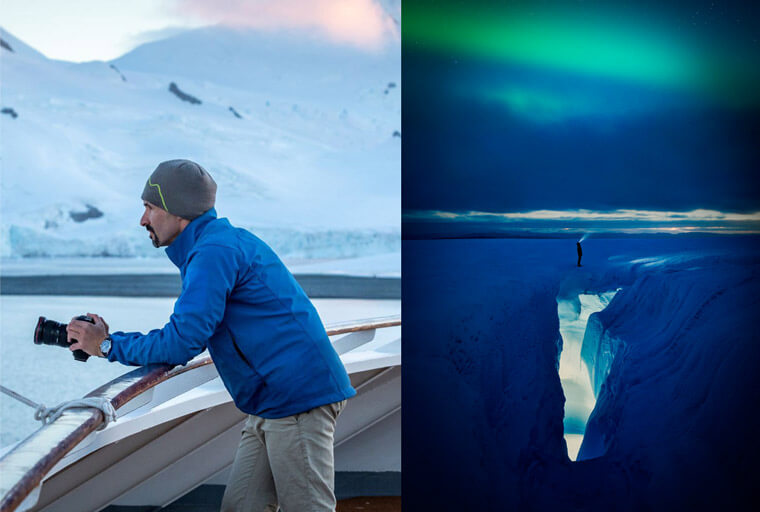 ▲Paul Zizka(左)與其拍攝的極光照片作品。