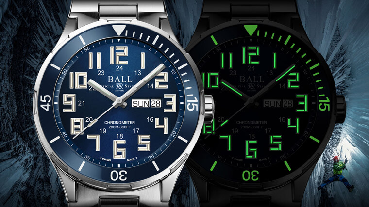 前面提到波爾錶分別推出黑色與藍色陶瓷圈版本,相對地兩種版本也各有呼應錶圈顏色的面盤,它們同樣採用太陽紋裝飾,讓黑色或藍色隨著光線照射能幻變出深淺層次。面盤的顯時功能除了大三針以外,還有3點方向的日期與星期窗,此外波爾錶還設置了大型的阿拉伯數字時標,這些時標皆是以品牌招牌的自體發光微型氣燈所組成(指針上也都有鑲嵌上氣燈),波爾錶這項專利發明的好處在於它的發光效果比一般夜光物料更持久也更亮,加上陶瓷圈的刻度和數字亦填覆了Super LumiNova超級夜光塗層,當Paul Zizka在從事夜間攝影計畫時,想看時間只要瞄一下面盤,就會有強大的夜光功能讓他能一目瞭然當前時刻,對攝影師而言,波爾錶的獨門設計正好符合他的戴錶需求,實用性毋庸質疑。