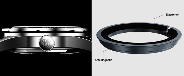 ▲錶殼內部設有Amortiser®防震裝置,既有抗磁作用,可能提升手錶側邊的防震保護力。