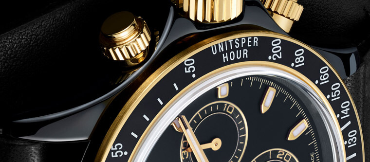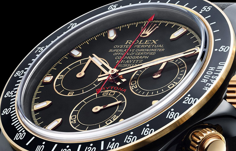 為了滿足Lenny Kravitz偏好的復古風格,Artisans de Genève於116523的半金錶殼加上黑色的DLC鍍層,K金錶圈則是嵌入手工製作的黑色膠木(仔細看黑色錶圈的測速計刻度與原廠的樣式也有點不同,例如原廠的平均時速刻度最多到400km/h,而改裝後則只剩200km/h),至於手錶本身的K金計時按把和錶冠等則保留,以與黑色DLC錶殼呈現亮暗對比,同時也能展現出低調的貴氣。