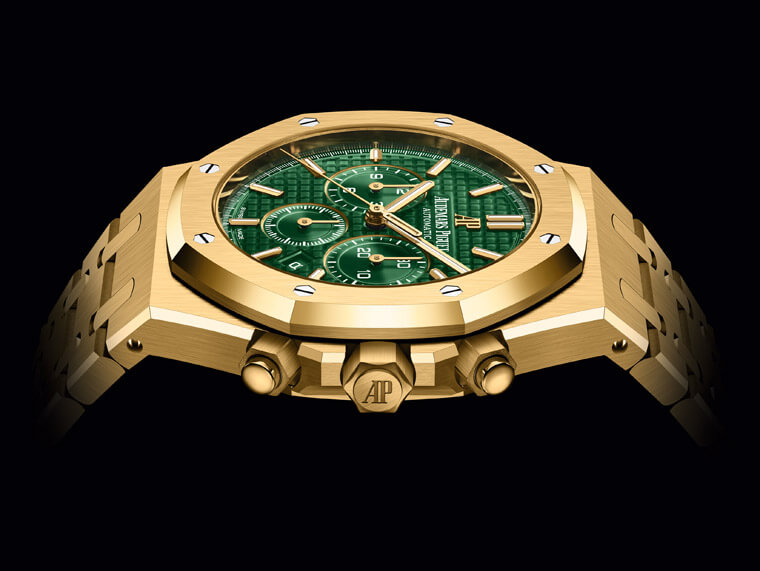 綠色運用在手錶面盤上作用明顯,那就是非常搶眼,無論搭配各種材質錶殼,綠面都能夠被突顯,看起來非常有朝氣、活力,也隱隱帶給佩戴者好心情,此次愛彼一口氣呈現數款皇家橡樹新作,它們的共通點就是綠色系面盤,而且品牌還透過不一樣的裝飾處理,將綠色詮釋出同中求異的個性。
