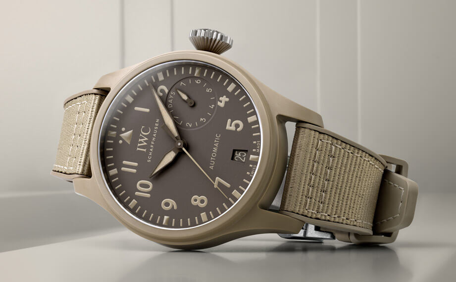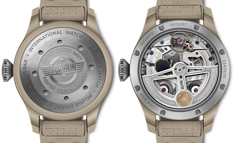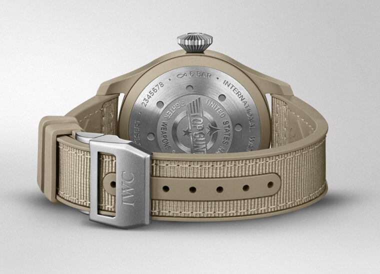 沙色陶瓷的靈感是來自一處美軍的海軍航空武器基地,它正位於洛杉磯以北大約150英哩的西莫哈韋沙漠上,美軍在這建立基地的主要目的包括訓練飛行員以及研發空戰武器系統等,這與Top Gun系列的創作淵源隱隱呼應,IWC便是由陶瓷殼的顏色聯想起莫哈韋沙漠的自然景致,因此幫手錶冠上「莫哈韋沙漠特別版」之名。