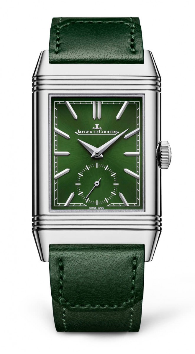 2021年邁入90週年的Reverso系列猶如猛虎出閘般,積家一口氣推出了數款新作,其中這款是最具有原始翻轉手錶情懷的基本款。品牌為呼應Reverso早期的色彩搭配,推出綠面新款,面盤上的太陽放射狀飾紋漆面和相襯的綠色皮革錶帶,令人聯想起積家總部汝山谷中周遭的松樹森林。面盤匯聚Reverso系列的經典元素,時標的刻面造型與太子妃式指針互相映襯,在視覺上為漆面面盤增添立體感。位於6點方向的小秒針顯示採用圓形刻度環,圍繞舉行面盤的軌道式刻度在此還特別中斷以容納小秒刻度。而當佩戴者翻轉錶殼時,會發現錶框內鐫刻太陽放射狀飾紋,這點是為了要呼應面盤的裝飾工藝。