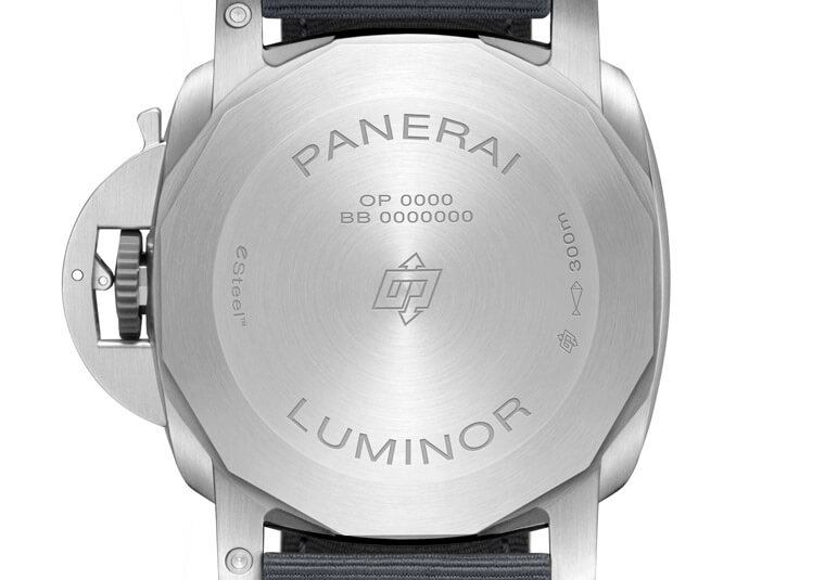 ▲實底蓋同為eSteel™材質,內部乘載的P.9010機芯是沛納海有名的基礎機芯之一。