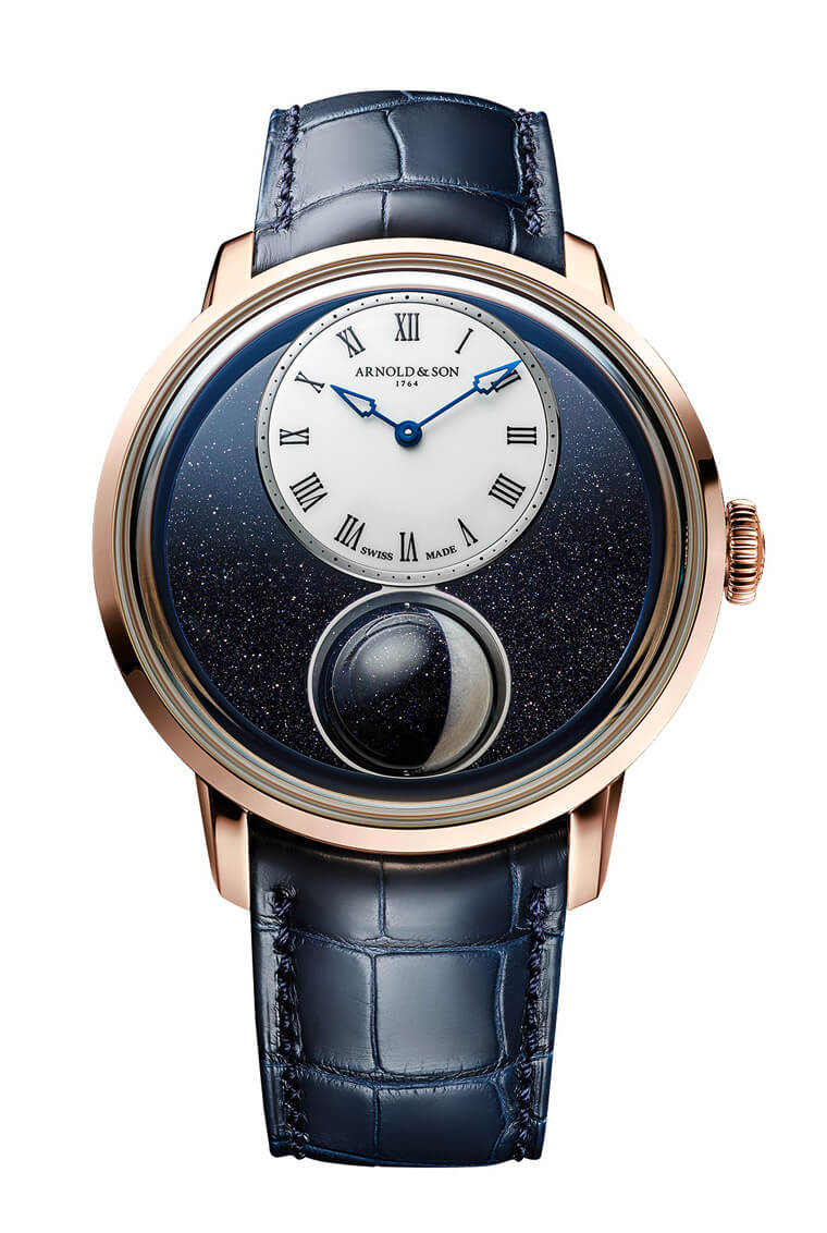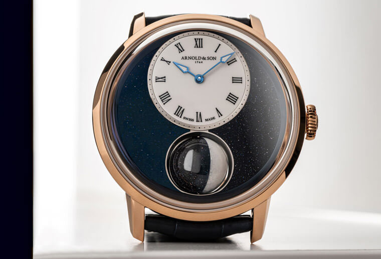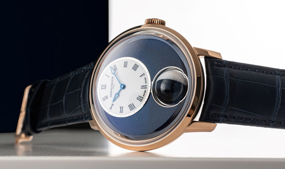 ARNOLD & SON亞諾表2021年新款Luna Magna採用品牌首見的立體月相設計,手錶在砂金石玻璃面盤上設有亞諾表迄今尺寸最大的月相顯示,簡潔卻又震撼的視覺魅力具體展現出品牌的製錶工藝。