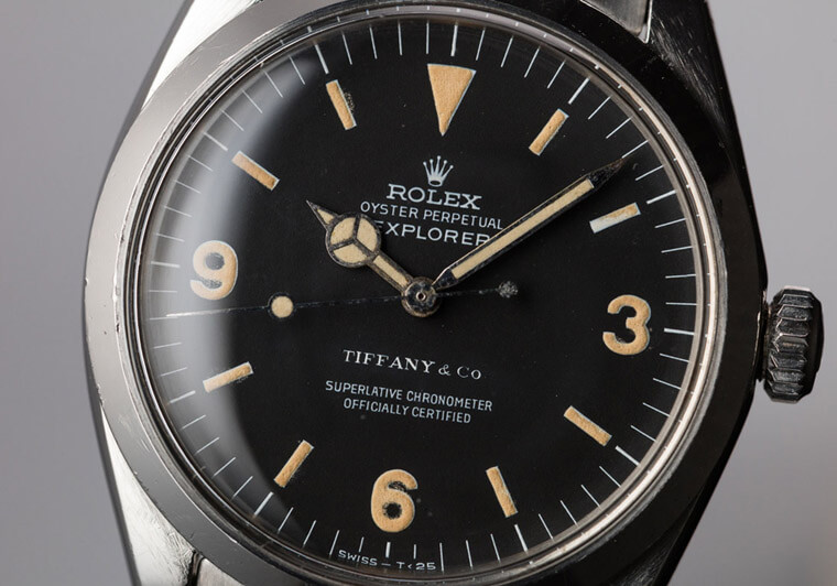 TIFFANY & Co.不僅是高級珠寶腕錶品牌,在他們的發展歷史中也曾是銷售高端精品的零售通路,如以前PP、AP和勞力士手錶都可以在TIFFANY的店面買到。其中勞力士和TIFFANY在1950年代後期達成了一項協議,內容大概是前者允許後者可以在勞力士手錶的面盤印上TIFFANY的品牌標誌。一開始這種印有TIFFANY Logo的面盤都是出自TIFFANY位於紐約的旗艦店以手工製作,但是到後來品牌其他家的零售店也開始自行製作印有自家Logo的勞力士手錶進行販售,而且TIFFANY的服務中心或零售店本身也都備有可供維修使用的TIFFANY面盤零件,這時期開始的TIFFANY面盤就已經不像是早期只限定在蒂芙尼的紐約旗艦店才有。
