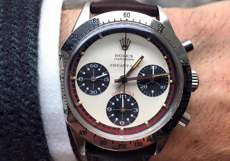 Daytona:迪通拿屬於TIFFANY面盤中的少數族群,尤其如果是”Paul Newman” 6239這種高人氣款又印有TIFFANY Logo的話,這在現代絕對會超搶手。