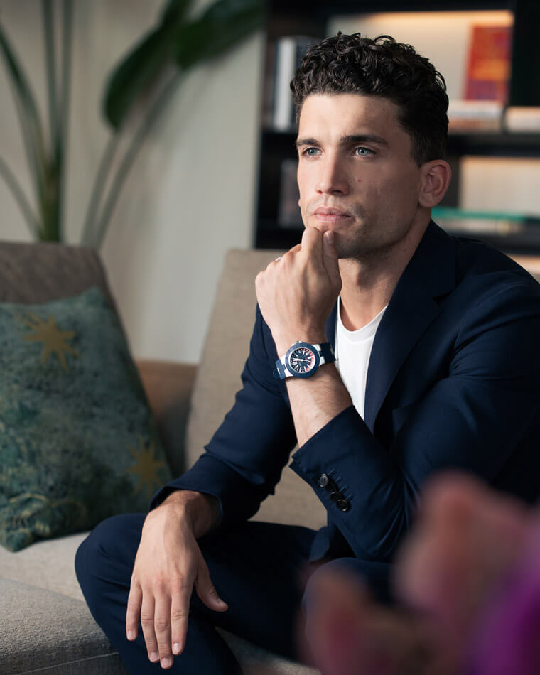 ▲圖為西班牙男星Jaime Lorente親自演繹Aluminium GMT手錶。