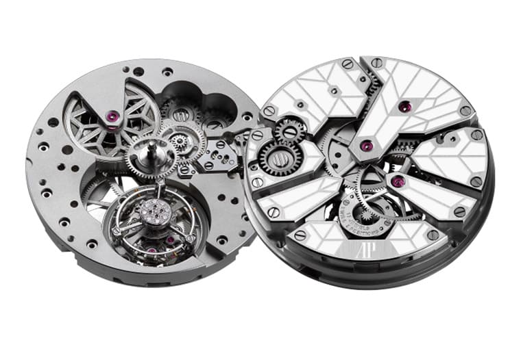 四款皇家橡樹概念飛行陀飛輪搭載的是2951手動上鍊機芯,機芯震頻為3Hz、動力儲存則有77小時,在錶背透明底蓋下可以一窺機芯的結構以及零件運作動態,當然還有AP身為一流錶廠的作工水準,不過由於錶款的寶石鑲嵌工藝實在太搶眼,就連陀飛輪等級的複雜機芯工藝,在這款錶上也頓時成了配角般的存在,讓人更能將焦點放在品牌與製錶技術同樣精湛的珠寶工藝上。