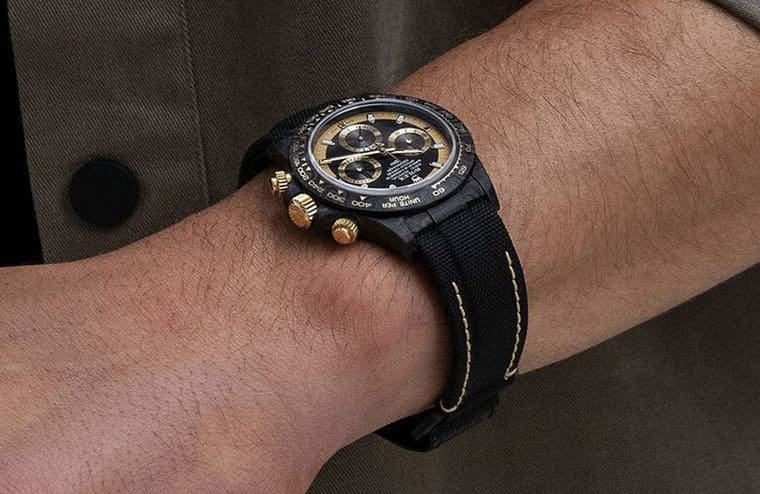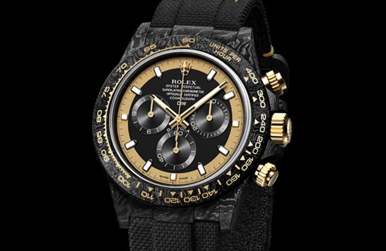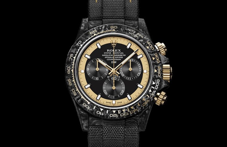 ▲DiW近期創作出新款勞力士Daytona改錶,整體色調採用低調奢華的黑金配色,將碳纖維錶殼與黃金零件完美結合。Source:Designa Individual