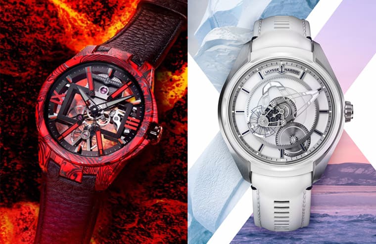 ULYSSE NARDIN雅典錶從大自然中汲取靈感,從南北兩極巍然而立的湛藍冰川,到太平洋上散落的火山群島。無論是熔岩噴發後冷凝成的黑色火山岩,還是千萬年累積而成的壯偉冰川,最近都先後成為品牌新作的繆思。