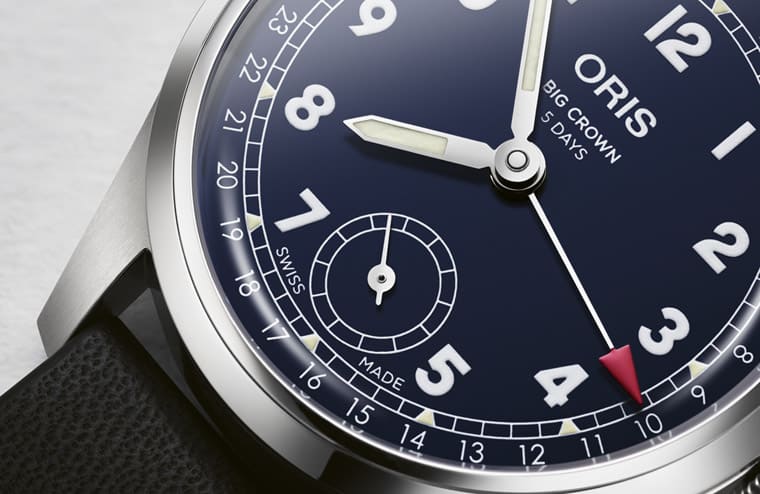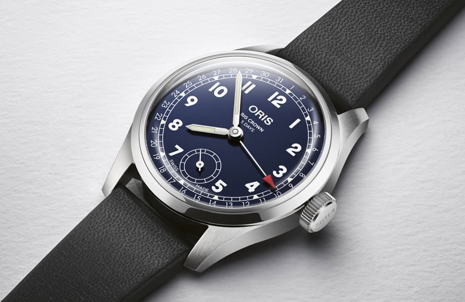 ORIS先前在2021年6月左右發表Hölstein 2021限量錶,特色在於錶款搭載品牌去年話題機芯的延伸機種——Calibre 403,也就是這是枚保固可達十年的優質機芯作品,而那款錶本身的配色是以灰色為主(包括面盤和錶帶都是灰色),最近品牌再接再厲推出一般非限量版的Big Crown Calibre 403指針式日期錶,基本上手錶的設計與規格都是沿襲Hölstein 2021限量錶而來,但是它的面盤改成了深藍色、錶帶也換成黑色,整體視覺效果因而有了新意。