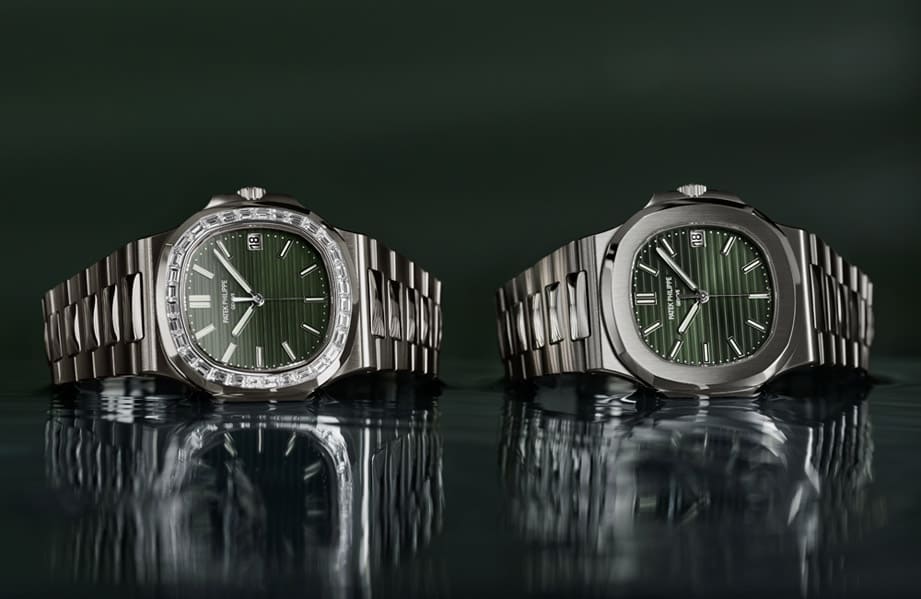 ▲少有收藏家可以像史特龍一樣同時擁有鑲鑽和無鑲鑽款的綠面金鷹5711。