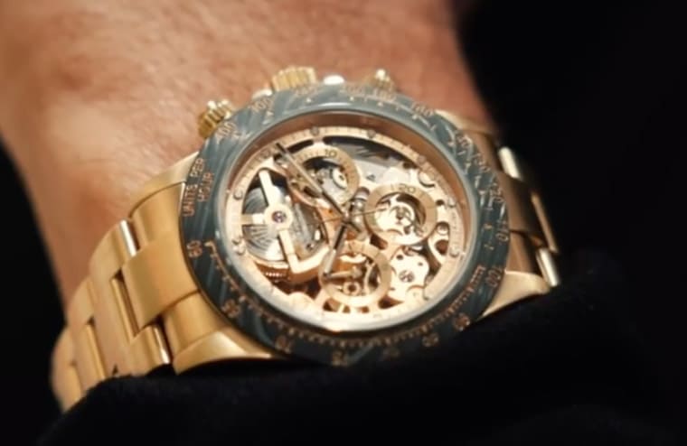 ▲接受一位藝術品收藏家客戶的委託,法國改裝錶品牌SKELETON CONCEPT著手改造一款K金的勞力士Daytona。Source:SKELETON CONCEPT
