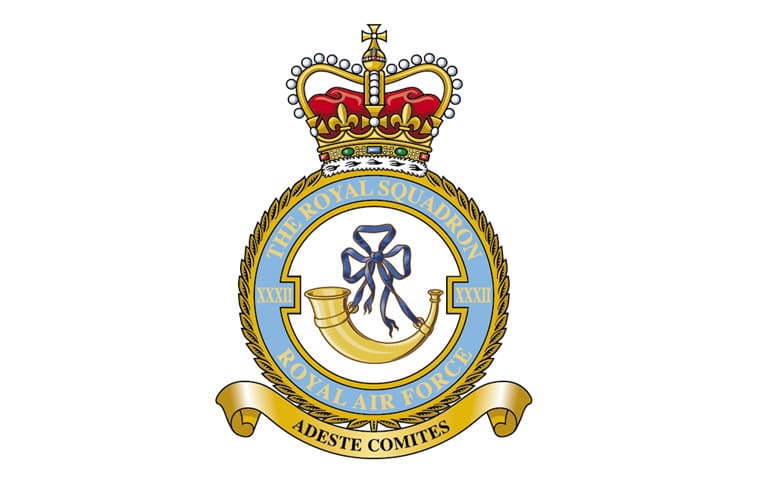第32中隊目前的大本營位於英國RAF Northolt基地,該中隊的標誌是一枚帶弦的狩獵號角,由喬治六世國王於1936年12月許可啟用。號角象徵著該中隊獵殺敵人的能力,讓人看到圖案就想到第32中隊過往在戰場上立下的戰功。