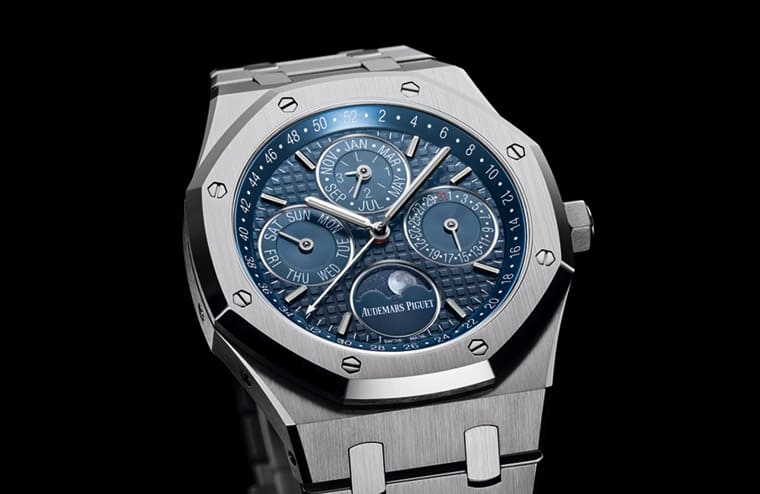 皇家橡樹萬年曆26574ST是2015年發行的錶款,AP剛推出這款錶時分別有不鏽鋼款式和玫瑰金款式,兩者又各自有藍面和銀面的選擇,因此一開始的皇家橡樹萬年曆就有四種版本可挑,發展到現在已經擁有超過十個版本以上,可知市場對這款錶的喜愛逐年升溫。本次我們要觀察的主角是最初登場的不鏽鋼藍面版本。