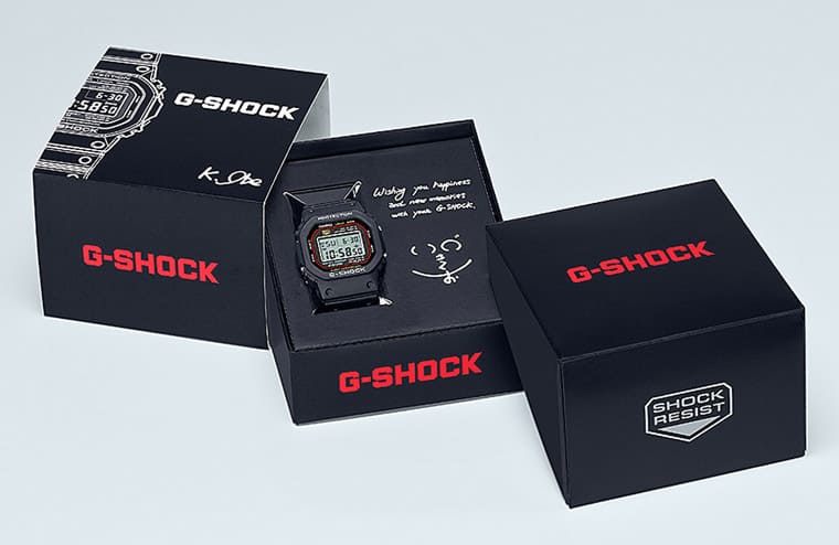 G-SHOCK這次的整新計畫服務大致而言是針對八款已經停產的型號——包括品牌首發作品DW-5000C以及長期熱銷5600系列中的DW-5600C等等(詳細款式型號請見下方圖示),G-SHOCK會協助錶主更換錶圈、錶帶與電池等零件,而維修完成後,品牌還會附上一個重新設計的獨特包裝給錶主,讓人可以把自己的愛錶放在紙盒裡面陳列當作收藏或是脫下手錶後的收納盒等,這個特殊包裝紙盒有個亮點在於品牌會把G-SHOCK之父——伊部菊雄想對錶主說的話以及親筆簽名字跡印在上頭,增添整體的紀念意義。