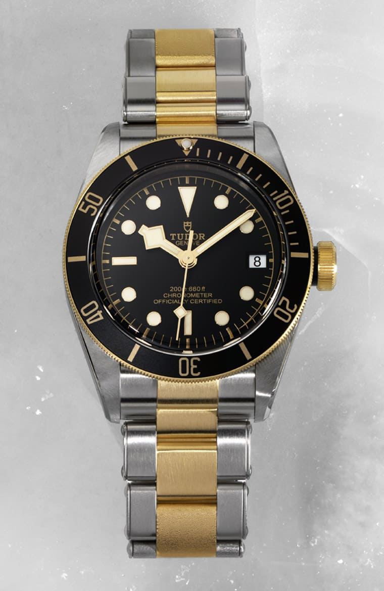 Black Bay S&Ge——41mm、黑色面盤、黃金及鋼鍊帶。參考價:NT$ 172,000