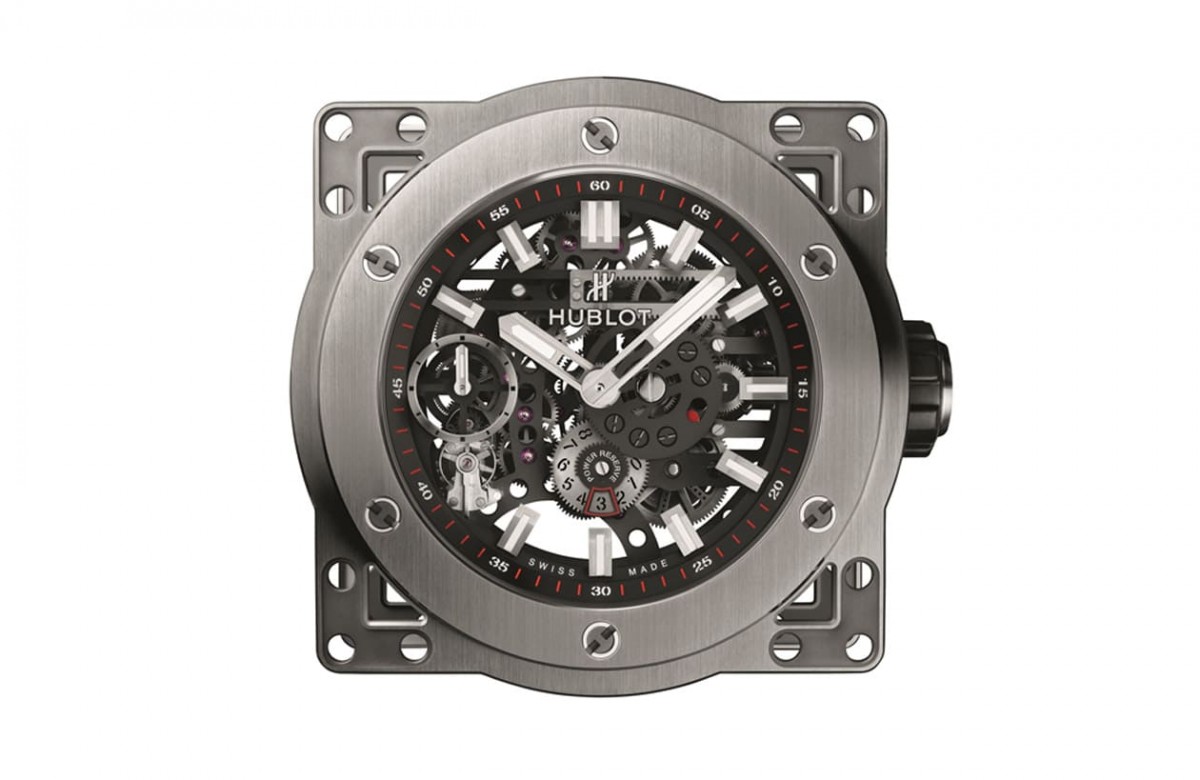 鈦金屬材質/HUB1201手動上鍊機芯/時、分顯示/動力儲存顯示/藍寶石水晶鏡面、透明底蓋/防水100米/錶徑45mm/參考價:NT$ 619,000