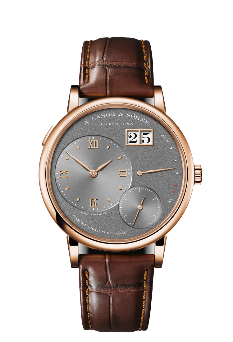 全新GRAND LANGE 1 完美體現了朗格進一步發展這個擔當品牌傳奇已廿五載有餘,並一直為精密製錶訂下新標準的決心,其挑戰在於令腕錶的比例變得更為優雅,但同時保持一眼可辨的獨特性。新款式的錶殼厚度減至 8.2 毫米,比以往更為貼合手腕,進一步鞏固GRAND LANGE 1 作為絕佳正裝腕錶的尊貴地位,巧妙地將低調優雅與精彩設計融為一體。這款直徑 為41 毫米的時計提供18K白金及18K玫瑰金兩個款式。