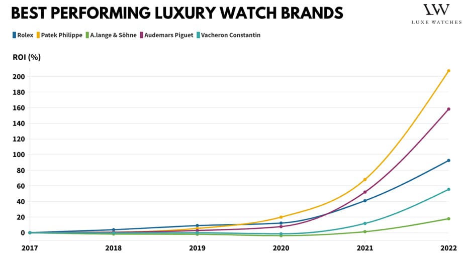 一般我們會覺得投資房地產是對抗通貨膨脹的裡產方式,但是Luxe Watches觀察下來,過去五年內房地產的投資報酬率約30%;看起來是不錯,但不算超級吸引人,尤其是你如果把買房子的錢拿來買百達翡麗手錶,你會發現五年內手錶的投報率竟高達207%。